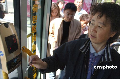 五月十日,北京阜城门一二一路公交车总站,乘客刷卡秩序井然。当日,北京告别了有着六十九年历史的纸质公交月票,公交车、地铁及部分出租车正式启动刷卡乘车。作者:韩艺冰
