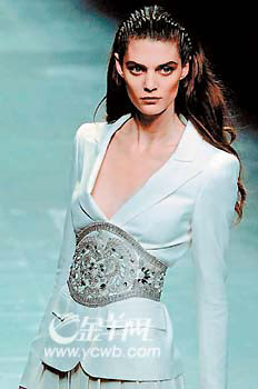其实,软塌塌的布料拿来做腰封,要么就被定型,塑造出稍为柔和的硬朗,要么则干脆用随意的褶皱来突出层次感,两者的要诀都是必须束紧,而后者往往更容易穿出富丽堂皇的高贵感觉。当然,前提是你必须选择那些具有反光效果的布料,如绸缎,要不就在腰带中央别上一枚造型独特的巨型宝石。除此之外,今年流行的富有民族色彩的串珠项链和手镯都是必不可少的装饰物。