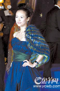 日前,章子怡在出席金像奖颁奖典礼时穿上了ARMANI一款深紫色束腰小礼服,仪态万千。闪着动人光芒的紫色礼服裙固然高贵,但若是少了腰间那条同样闪亮的绿色绸缎宽腰带,恐怕也难给人活泼灵动的印象。