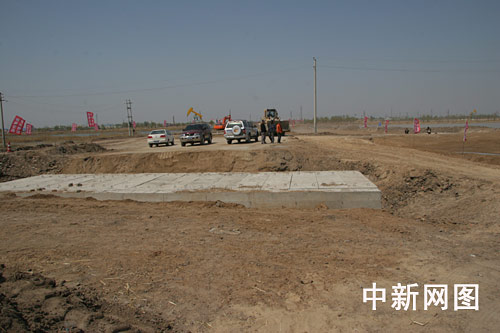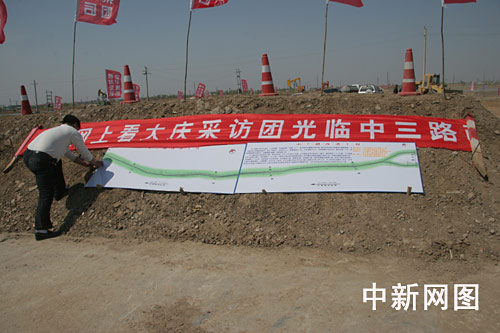 2006年5月12日上午,“网上看大庆”采访团在中共市委宣传部领导陪同下,参观了大庆市的在建重点工程。图为13家网络媒体的记者参观正在建设中的中三路改造工程。