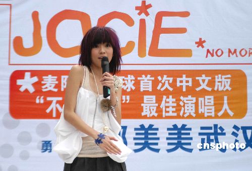 2006年5月14日,新加坡华人女歌手郭美美新专辑《不怕不怕》签唱会在湖北武汉群光广场举行,郭美美歌喉甜美,受到当地歌迷和市民的欢迎。作者:楚天行