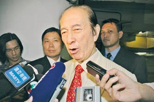 庭内,赌王对十姑娘的代表律师发问,总是步步为营,先望望代表律师官乐怡才回答。出到庭外,何鸿燊大方地接受传媒追访。