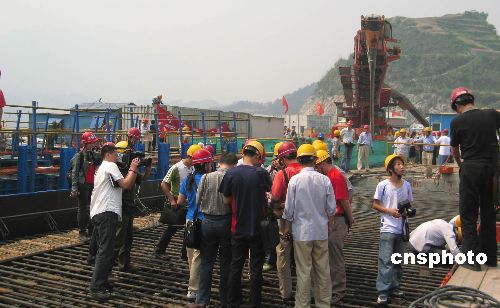 | 三峡大坝右岸二号非溢流坝段混凝土浇筑仓工程,五月十八日上午正式通过长江水利委员会三峡监理部验收。该仓宽二十米,长度为三十四点六米,深度为二点八米。其结构复杂,共需要进行六个层次、每层五十公分的浇筑作业。目前,该工程还剩仓面面积三百七十七点四平方米,混凝土浇筑量一千零一十七点五立方米。一旦混凝土浇筑完工,举世瞩目的三峡大坝将正式建成。中新社发 艾启平 摄
