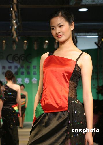 5月21日是第八届海峡两岸经贸交易会开幕第四天,华南女子学院的时装展示表演在上午举行,模特们在展览厅T型台上展示了100余款师生们亲自设计的新颖服饰,引起与会者的极大关注。作者:汪虎
