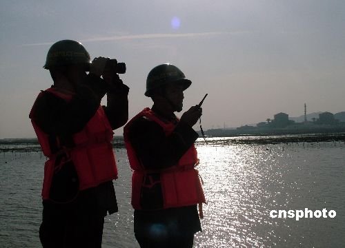 图为江苏连云港高公岛边防派出所警卫在对田湾核电站外围做保卫。我国单机容量最大的田湾核电站1号机组在5月12日20时19分首次并网成功后,连云港市边防支队高公岛边防派出所加强对核电站严格管理和优质服务,加强外来人口管理、海上渔船民管理,发挥边防职能作用,打击侵犯核电建设的违法犯罪行为。中新社发 黄嵩 摄