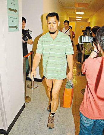 一面胡须的面试者换上短裤后仿似真空上阵。