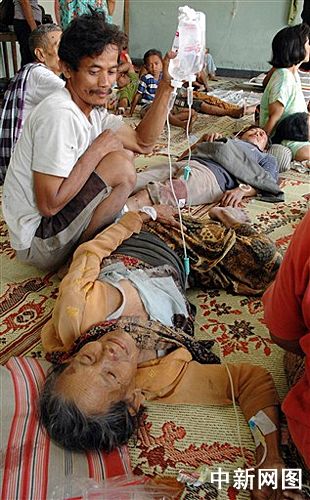 图文报道:印尼日惹市地震伤员被抬往医院救治