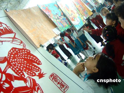 图:北京小学生学做中国年画欢度“六一”