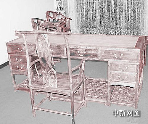 中新网茂名6月3日电(梁盛 孙广宇)随着人们收入增加和文化品位的提高,古典家具正在进入市民的生活。记者今天在广东茂名一家私营家具展示厅看到一套丝毫不抢眼的仿明代海南黄花梨木桌椅,标价高达三百万元人民币,实属罕见。