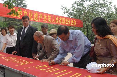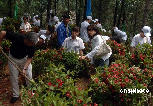 六月三日,来自巴基斯坦、秘鲁、越南等国的十多位驻华使节,在北京周口店北京人遗址博物馆前,以义务植树的形式宣传保护文化遗产。据悉,此次活动是为庆祝即将到来的第一个中国文化遗产日,让更多的人用实际行动来保护文化遗产。中新社发 韩艺冰 摄
