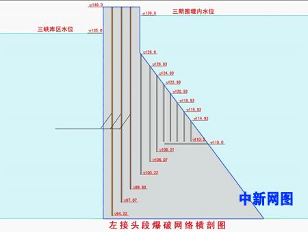 即将爆破拆除的三峡工程三期碾压混凝土围堰(简称“三期RCC围堰”),三峡三期RCC围堰,与下游土石围堰一起保护右岸大坝、电站厂房及右岸非溢流坝段的施工,是实现三峡工程蓄水、通航、发电的关键性控制工程。三峡工程右岸大坝已经于今年五月二十日全线到顶达到一百八十五米