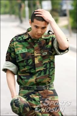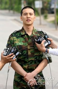 他身穿军装脚上却穿着非军用的白色运动鞋,蹒跚地走了出来。他就入伍仅6个多月就退伍说:“在最前方服役而提早退役,给众多粉丝们带来了更多的失望,想对和我一起渡过军旅生活的战友们转达感激和抱歉之情。”