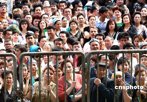 新疆高考考点外少数民族家长翘首以盼。中新社发 刘新 摄