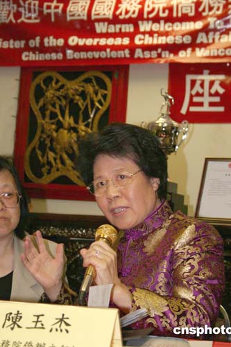 在谈到侨团发展问题时,陈玉杰主任说,温哥华是海外侨胞聚居地之一,象温哥华中华会馆成立至今已有百年历史,现在会务活动规范活跃,内部机制健全,说明海外侨胞非常珍惜自己的社团组织,齐心想把事业作得更好。陈主任认为,温哥华侨团在反对种族歧视、维护侨胞利益、传承中华文化和促进加中友谊等方面都作出了积极贡献。今后,新老侨社组织应该增进沟通与理解,共同促进侨社的发展。