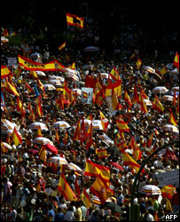 这次游行是由西班牙“恐怖主义受害者联盟”组织的,并得到了议会主要反对党人民党的支持。