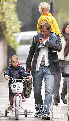 入选原因:裘德·洛外型潇洒放荡不羁,但是骨子里对待孩子有一种特别的好感。他和前妻莎迪·福斯特一起生活的时候,为了照顾孩子坚决不肯请保姆,各色杂事家务统统由自己承担才肯放心。