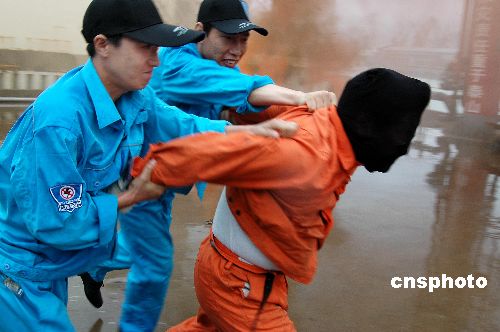 6月22日,为配合国际社会反恐战争,履行《1974年国际海上人命安全公约》(SOLAS公约),江苏连云港在液体化工专用码头举行“港口设施保安反恐消防专题演练”。演练在模拟的真实场景下进行,整个演习历时45分钟,取得圆满成功。中新社发 陈立东 摄