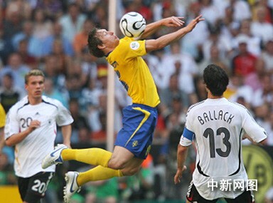 中新网6月25日电 北京时间今天凌晨,世界杯足球赛八分之一决赛在慕尼黑世界杯体育场进行。东道主德国队在揭幕战之后再次出现在这个赛场,结果凭借着波多尔斯基的两个进球,以2比0完胜瑞典队,轻松晋级八强。瑞典队上半场两球落后后被罚下一人,虽然下半场开场后不久获得一个点球,不过未能改写比分。