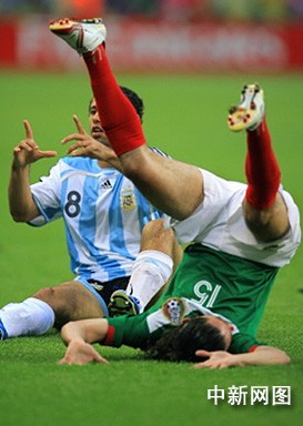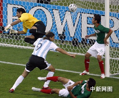 中新网6月25日电 德国世界杯赛北京时间25日进入淘汰赛阶段。在同样来自拉丁美洲的阿根廷队和墨西哥队的比赛中,夺冠大热门阿根廷队遭到墨西哥人的强力狙击。在90分钟的比赛中,双方凭借马科斯和克雷斯波的进球,战成1比1平,比赛不得不进入加时赛决胜负。加时赛中,马克西•罗德里格斯一脚怒射破门,阿根廷以2比1艰难击败墨西哥队,挺进八强。在30日进行的四分之一决赛中,阿根廷队将对阵东道主德国队。