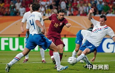 两队都是攻势足球的代表,在经过了试探后,两队毫不客气,展开激烈的对攻。这是一场你死我活的决斗,比赛一开始就充满了火药味,范博梅尔和博拉鲁斯相继对葡萄牙队的C-罗纳尔多犯规吃到黄牌,而C-罗纳尔多也被踢伤。荷兰队的鲁本表现活跃,在边路突破后将球传给库伊特,范博梅尔接到库伊特的传球后低射偏出。第15分钟,费戈左边路拿球加速突破了对方后卫的防守,将球传至禁区内,葡萄牙队球员没能碰到皮球。此后,马尼切犯规,被出示黄牌。