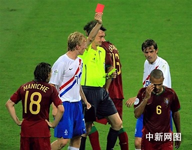 中新网6月26日电 4张红牌,16张黄牌,一个进球,今晨的世界杯赛场刺刀见红,野兽般凶猛。凭借着马尼切的劲射破门,老辣的葡萄牙队最终笑到了最后,以1比0击败年轻的荷兰队,晋级八强。在四分之一决赛中,他们将与英格兰队争夺一个四强名额。
