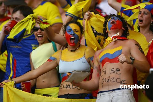 当地时间六月二十五日晚,世界杯八分之一决赛英格兰对厄瓜多尔的比赛在斯图加特世界杯足球场进行,英格兰队凭借下半场贝克汉姆一个漂亮的任意球,最终一比零淘汰厄瓜多尔队,进军八强。看台上的性感女球迷为自己的球队加油助威。