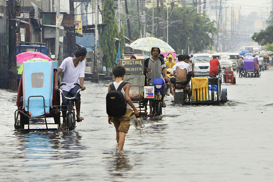 7月16日,一场热带风暴当天袭击了菲律宾首都马尼拉。这场风暴不但带来大量降水,也使城市大量积水,出行困难。