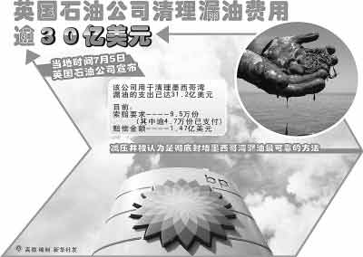 英国石油公司5日宣布,它的控油相关支出已达到31.2亿美元。它还处理了4.7万起索赔要求,为此支付1.47亿美元。