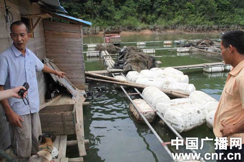 渔民丘永禄:18日开始浮头,整个网箱的鱼全都浮起来了,很恐怖,拼命撞(渔网),不吃料,我们吓坏了。19日开始有鱼死了,20日大批量,21日是真正大批量,23日一条鱼看不见,我们拉网鱼全部沉在底下。
