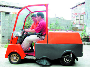 3年来,他们相继从家中拿出了准备买新房的近30万元积蓄用于研究。2008年底,经过多次改装和调试,一辆“摩托扫地车”应运而生。2009年暑假,第一代小型电动清扫车终于问世。