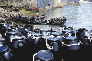 大连“7·16”新港输油管道爆炸事故后,石油泄漏到海面。辽宁海事、渔业、环保等部门启动了最大规模海上清污行动,组织协调专业清污人员1300多人,其他社会人员5300多人攻坚。目前海上油污面积已缩小至约30平方公里。 新华社 发