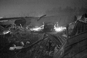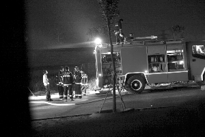 扑灭大火后,消防员准备撤离现场。本报记者 王贵彬 韩萌 吴江 摄