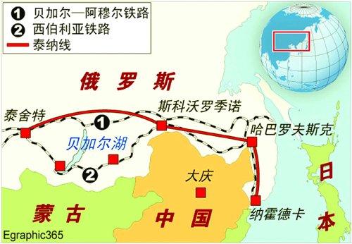 中俄石油管道也就是东西伯利亚—太平洋石油管道中国支线,起自俄远东斯科沃罗季诺原油分输站,经中国黑龙江和内蒙古的13个市县区,止于大庆站。管道全长约1000公里,其中俄罗斯境内72公里,中国境内约930公里。计划于2010年10月31日建成投产,合同期20年。