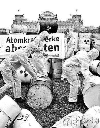 9月9日,在德国首都柏林,反核能示威者在德国国会大厦前抗议。 德国政府近日决定,推迟国内核电站关闭时间,服役期最长延长14年。延长运行期间,核电企业需要缴纳核燃料税等并确保核电站能承受恐怖袭击。民意调查显示,大部分德国人赞成关闭核电站。环保组织批评默克尔顺从于德国核能企业的游说。