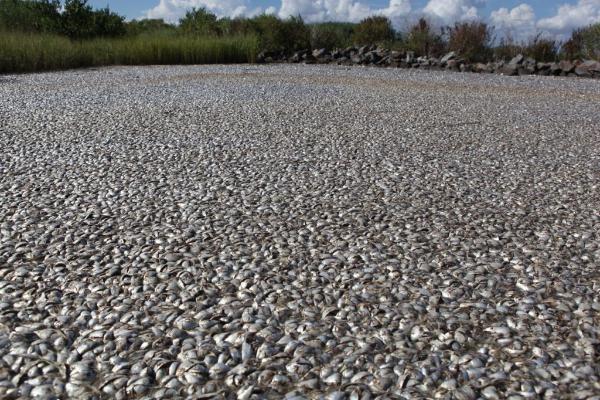 美国路易斯安那州的一片靠近墨西哥湾的水近日成了令人瞠目结舌的“死鱼之海”:不计其数的各种死鱼、螃蟹和海鳗的尸体将水面盖得严严实实。当地电视台记者甚至在这片位于密西西比河入海口的水域中发现了一头鲸鱼的尸体。各方因此呼吁当地政府就此展开调查。