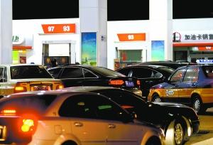 昨晚10时,西五环外的中石化加油站排满前来加油的汽车。记者 吴镝摄