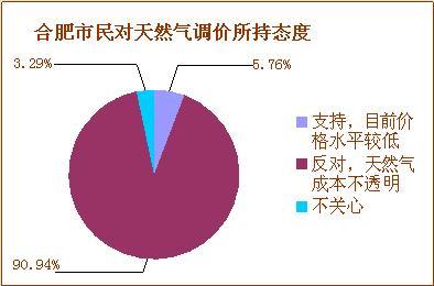 但面对燃气供应企业的压力,可能更多的市民选择的是“不买账”,在对天然气调价所持态度一问中,1943张票中有1767票投给了“反对”,比例高达90.94%,天然气成本不透明是他们反对的一大理由;仅有112个人认为目前价格比较低,上调一些还能承受,因而选择支持调价,但是依然呼吁“一定要控制调整的幅度和次数,调整要合理”;除此之外,还有64人对此次天然气价格调整持不关心的态度。