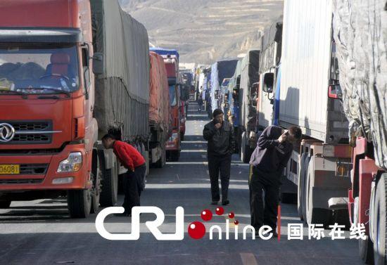 11月10日晚起,甘肃定西境内马营梁服务区加油站外陆续出现的加油大军,将本就车多路窄的马营梁路段堵得水泄不通。至11月11日,千余辆重型货车绵延近30公里堵停在该路段,12日堵车状况虽略有好转,但被堵路段的货车依旧排起了一条近20公里的长龙。油荒限购固然是导致堵车的一个原因,但原本油料充足却每遇加油站就排队加油的“心慌”司机也是一个不容忽视的原因。