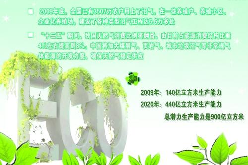 按照国家规划,到2020年我国生物天然气生产能力将达到440亿立方米,总潜力生产能力是900亿立方米。