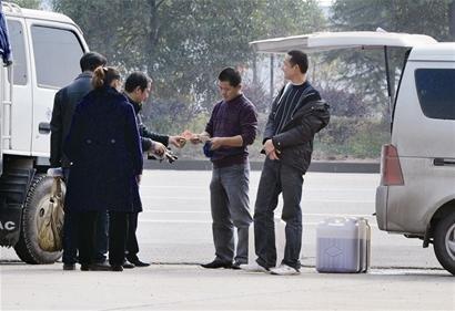 在刘师傅指点下,昨日上午10时许,记者赶到沌口东风大道的三丰加油站,远远地就看到加油站挂着“柴油售罄”的告示牌。可加油站入口处停着几辆“流动加油车”——一些面包车车厢内装有一个500升的大油桶,车旁还有几个装满柴油的塑料油桶依次排开,车主则在一旁叫卖柴油。