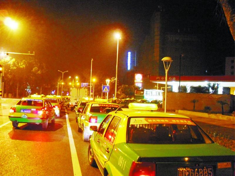 昨天凌晨4时,柠溪加油站外排队加油的的哥。