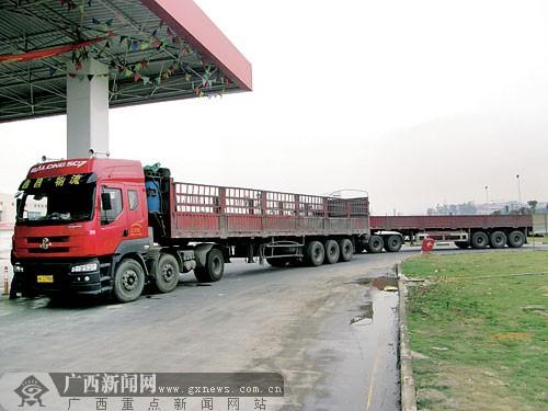 在金桥客运站对面的一家加油站,货车在等待加油。