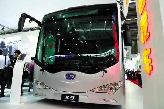 ■比亚迪纯电动大巴。戴晓晓/摄