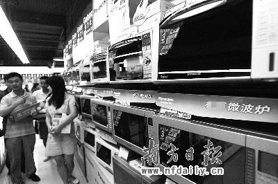 离能效标准正式实施只剩几天时间,家电卖场销售的微波炉大多未贴上能效标识。南方日报记者何建文摄