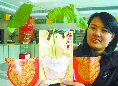 11月25日,在苏州察院场邮政局,一名女士展示环保植物贺卡。近日,一种新颖独特的环保植物贺卡悄然问世。这种贺卡内页置有草种和营养物质,只要在草种区域适当浇水,数天后就能长出青草和绿叶。由于其体现了亲近自然、关注环保的理念,受到许多消费者青睐。黄 剑 摄