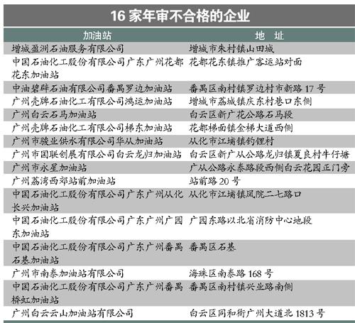昨天,广州市经贸委通报,广州市增城盈洲石油、中石化花都花东加油站等16家企业年审不及格,需自2010年10月28日起3个月内整改,整改期内不得开展成品油经营活动。整改后,应按年检规定的条件要求,及时申请补办相关手续。经整改仍不及格且不再具备从事成品油零售经营条件的企业,将按《成品油市场管理办法》及相关规定处理。 (记者耿旭静)