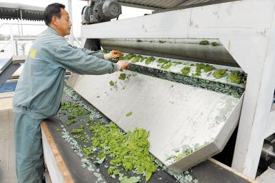 12月6日,工作人员在整理脱水后的蓝藻藻饼,这些藻饼可以制作有机肥。云南省昆明市滇池管理局“滇池蓝藻移动式打捞暨无害化处理示范工程”取得初步成效。该工程把打捞的蓝藻进行机械化分离后,可制作成生物肥料,既能在一定程度上解决蓝藻打捞后脱水藻泥处置问题,又可制成城市园林绿化、生态农业所需的复合有机肥料,实现蓝藻藻泥的无害化处理和资源化利用。新华社记者 秦晴摄