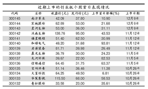 上述市场人士认为,近两个交易日市场回暖,成交量略有放大,而最近上市的新股也是连续上涨,这可能会刺激今日的新股炒作。不过,考虑到创业板今日发行三只新股以及主板市场也有新股发行,高价发行的汤臣倍健的涨幅可能有限,预计涨幅就在40%左右,如果超预期,那就可能超过汇川技术(300124,收盘价156.50元),成为创业板第一高价股。
