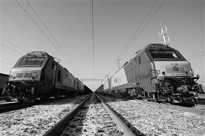 12月26日,满载煤炭的列车在大同湖东站整装待发。 新华社记者 邢广利摄