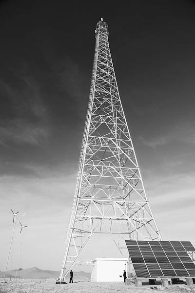 “不让通信留死角,是公司的硬指标,可是新疆边远地区大都是荒无人烟的大漠、戈壁、高山、高原,电源提供一是困难重重,二是成本太大,解决能源只能依靠太阳能和风能,太阳能在日落后和阴雨天不能发挥作用,而风能在强风地区还不能使用,这就给我们提出很多需要攻克的难题。”新疆移动网络部项目经理曹罡说起新能源的运用,感慨颇多:“先说太阳能,在新疆北疆沿线,夏季光照每天达16小时,可是太阳能板架设低了容易丢失,架设高了增加成本,网络部的工程师就会选择地势较高的山丘或者高坡,这样利用了地势,又节约了成本,但是,员工就很辛苦了,往往是肩挑背扛,把几十公斤重的设备一趟趟靠人工背上去,手磨出了血、肩磨掉了皮是常有的事,记得2009年初,公司接到任务,要保证哈密到北京的铁路建设沿线在春节前信号覆盖,而那时沿线的铁路施工单位的电压和我们使用的电压不能共用,只能靠太阳能,工期短、任务重,我们冒着零下二十几摄氏度的严寒,在野外施工,割板、安装、支架、测试……